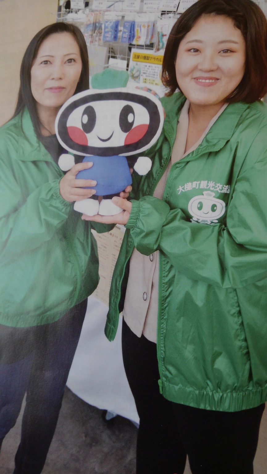大槌町観光協会スタッフと「おおちゃんマスコット」