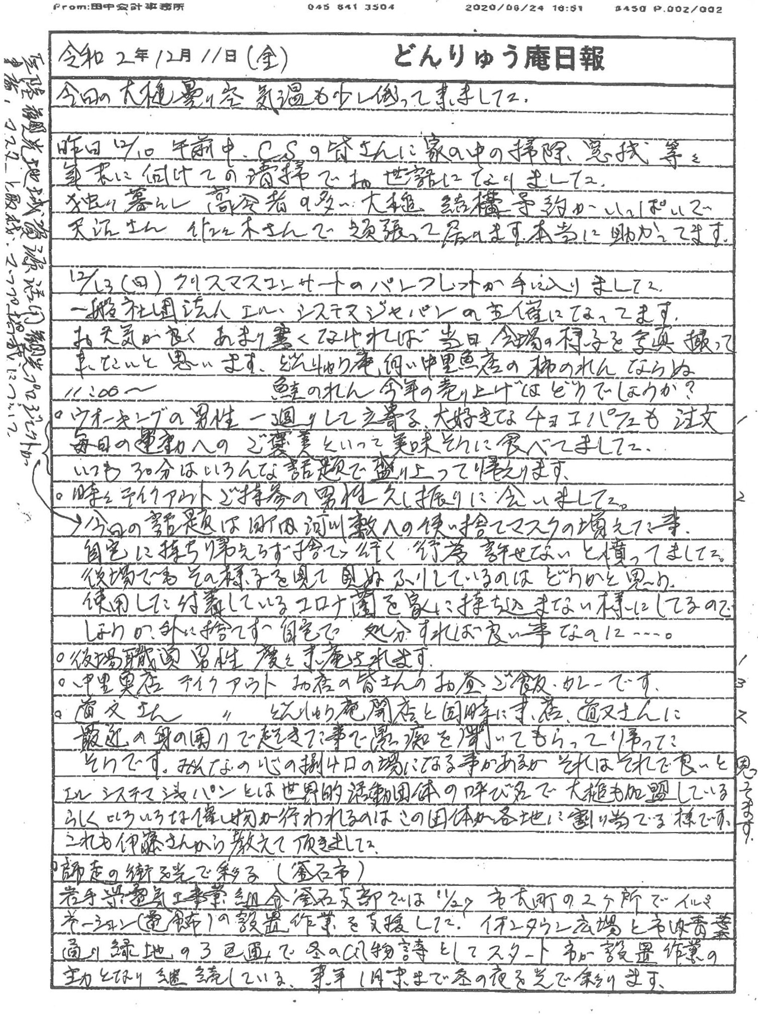 中里鮮魚店様の店頭につるされ寒風に揺れる大槌町特産の新巻鮭(鮭のれん)や、(一社)エル・システマジャパンと、おおつち子どもオーケストラによるクリスマスコンサートや、「三陸鉄道途中下車でまち歩くMAP」への掲載や、岩手県電機工事業組合釜石支部によるイルミネーション設置支援や、コミュニティハウス「どんりゅう庵」のお客様などについて、震災機構のお嬢こと佐藤悦子特別顧問(岩手県大槌在住)がレポートします。