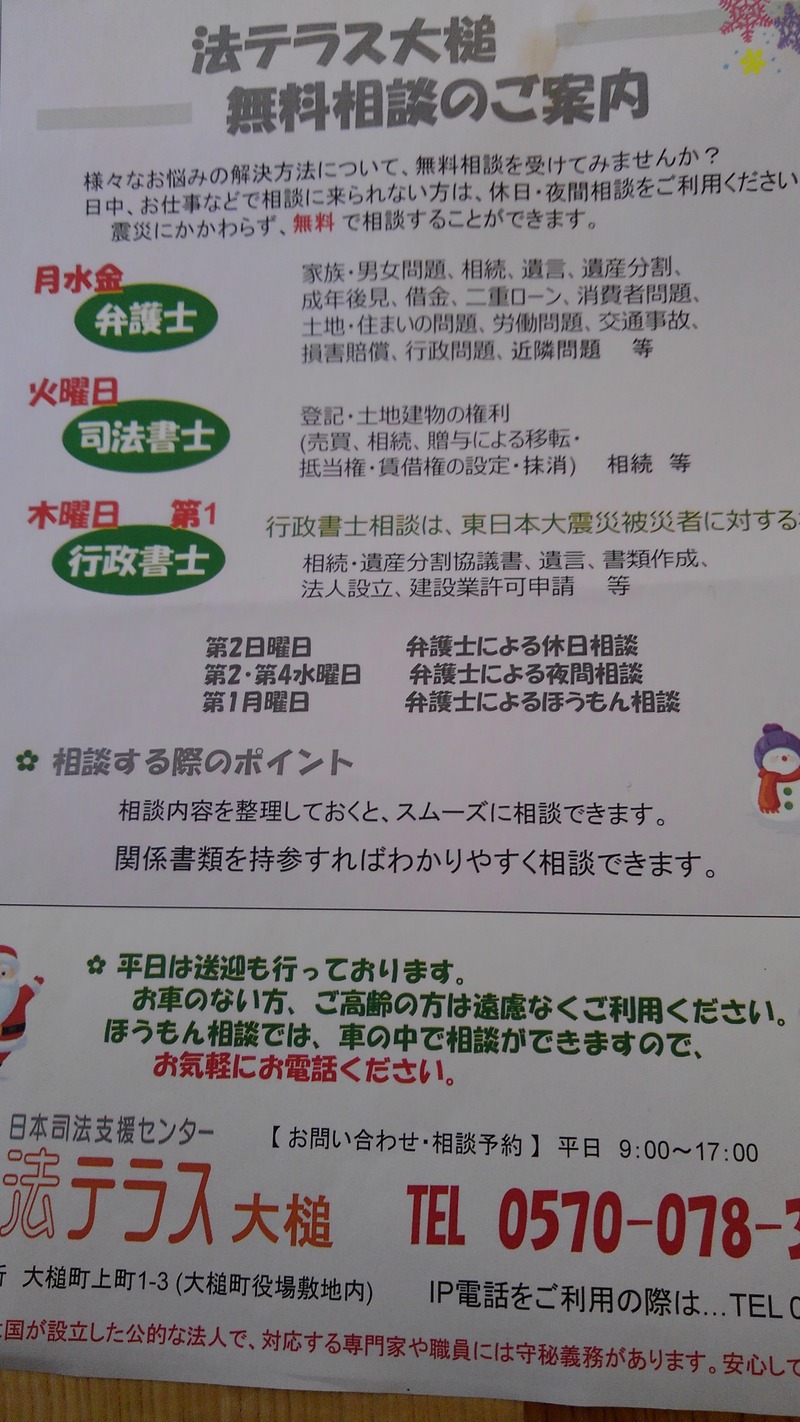 法テラス大槌無料相談の案内