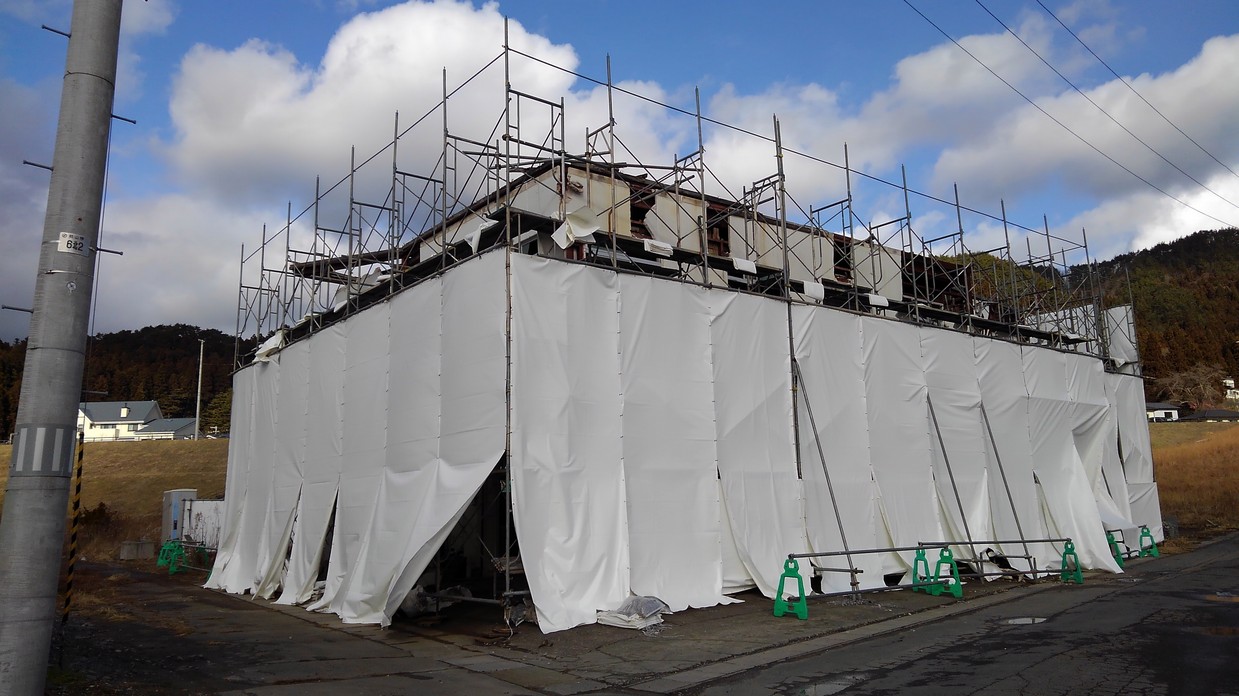 解体作業中の旧民宿あかぶ