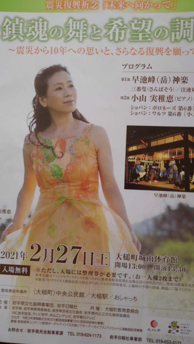 早池峰神楽と小山実稚恵ピアノコンサートによる震災復興祈念イベント