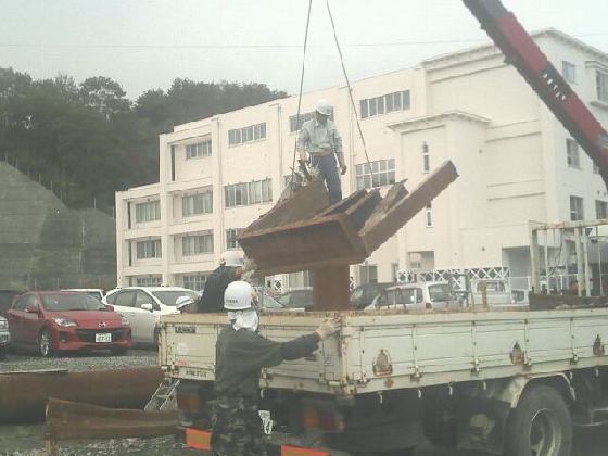 震災後そのままになっていた役場前の歩道橋が撤去されました。