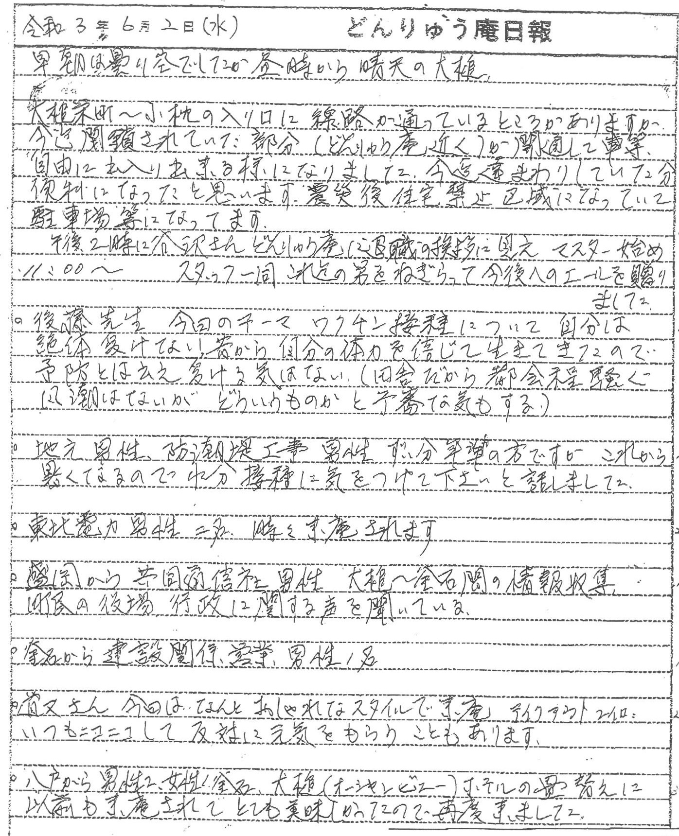 閉鎖されて不便だった大槌栄町~小枕の入り口線路部分が開通して便利になったことや、コミュニティハウス「どんりゅう庵」のお客様などについて、震災機構のお嬢こと佐藤悦子特別顧問(岩手県大槌町在住)の現地報告です。