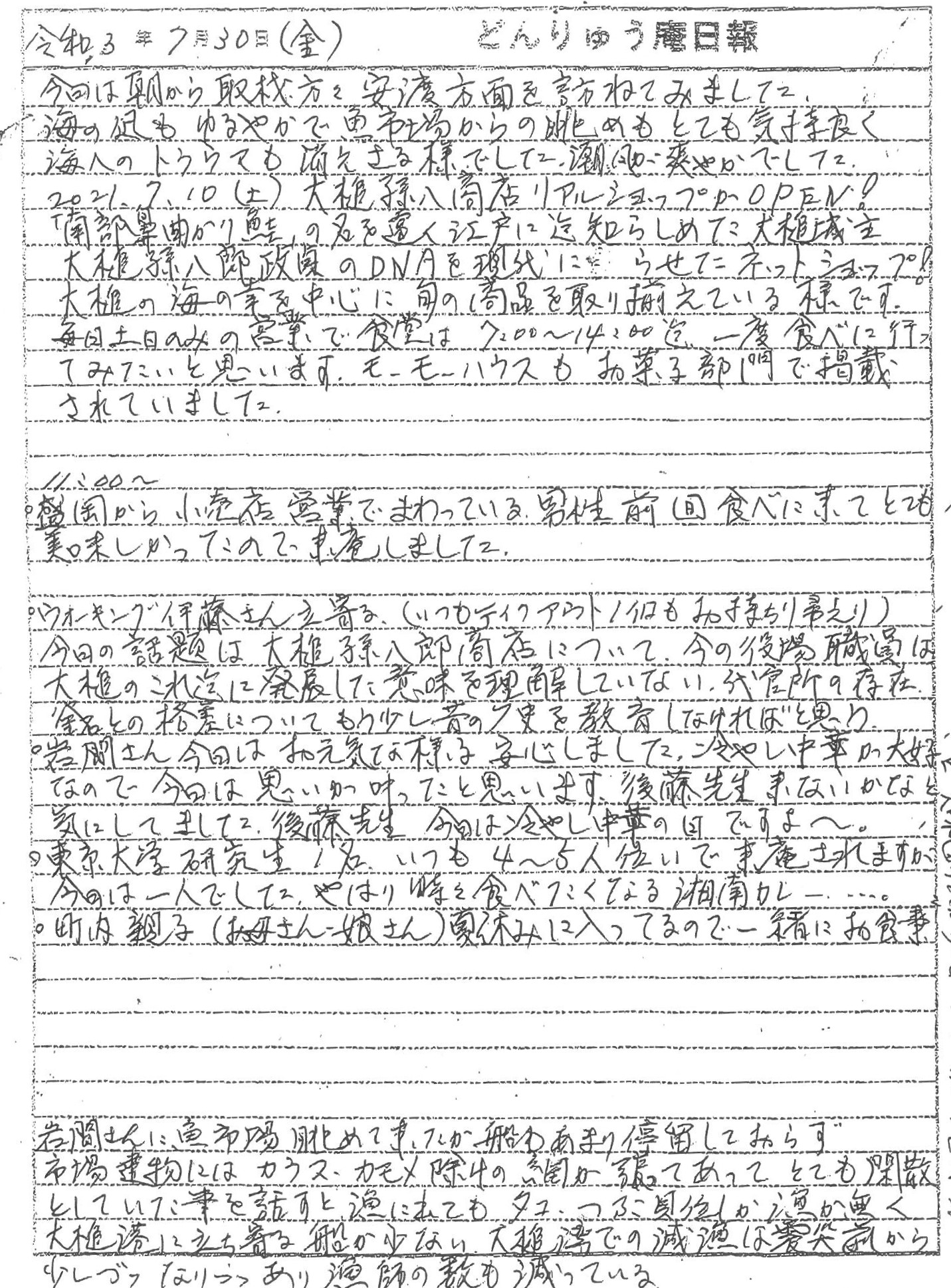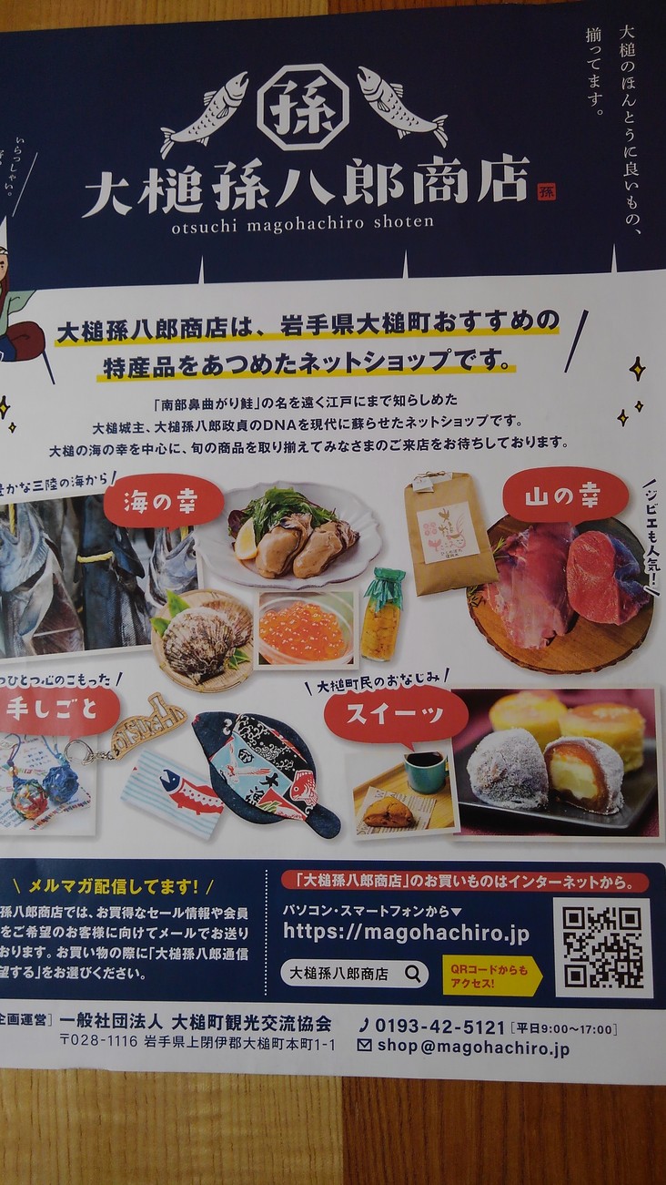 大槌町内の地域産品を取り扱うネットショップ「大槌孫八郎商店」(大槌町観光交流協会運営)が、食堂を併設したリアルショップ(土日のみの営業)を大槌町安渡(あんど)地区に開店しました。大槌の新たな名所です。また、コミュニティハウス「どんりゅう庵」のお客様などについて、震災機構のお嬢こと佐藤悦子特別顧問(岩手県大槌在住)の現地報告です。
