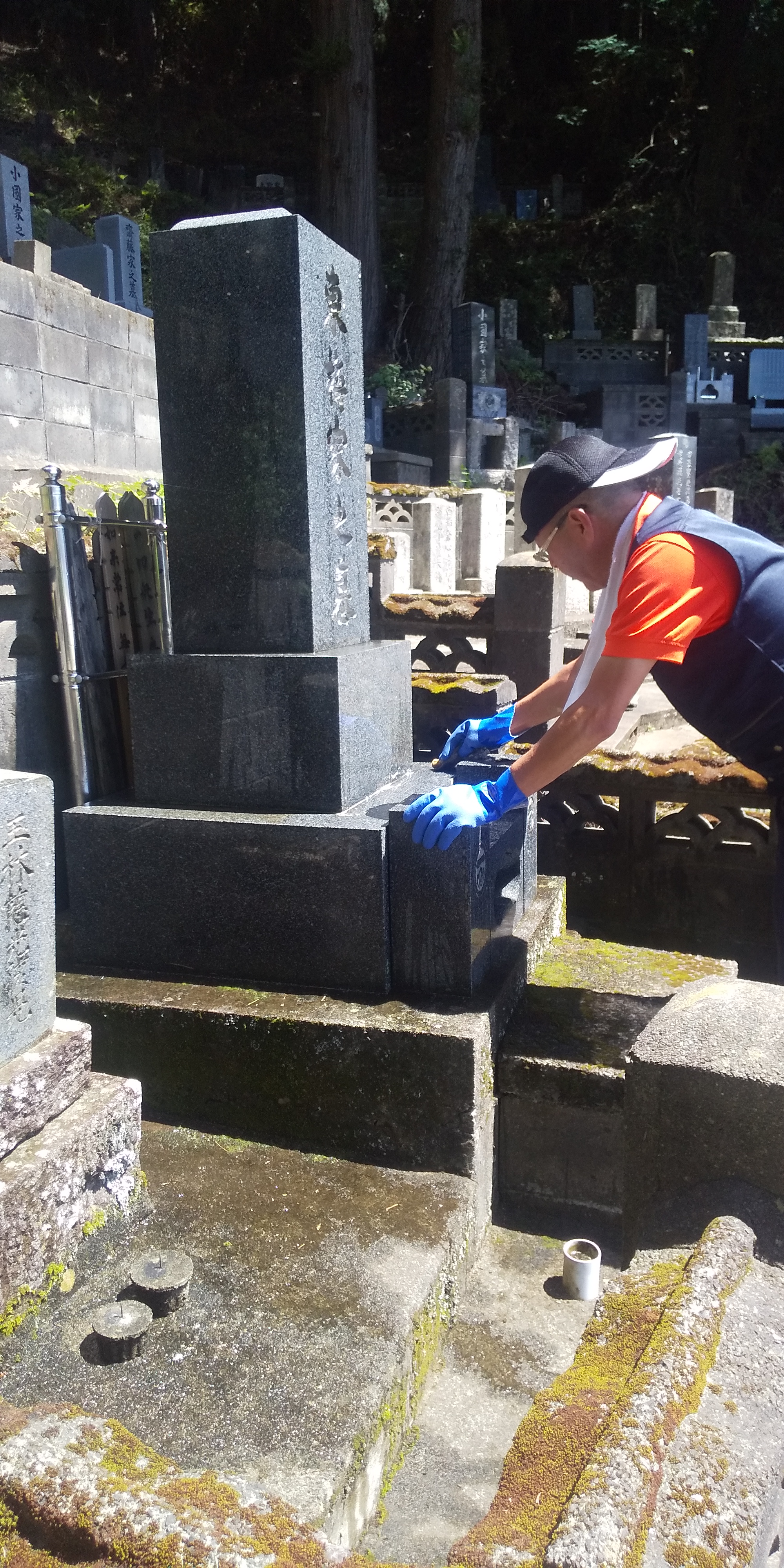 お墓掃除を行うコミュニケーション スタッフ