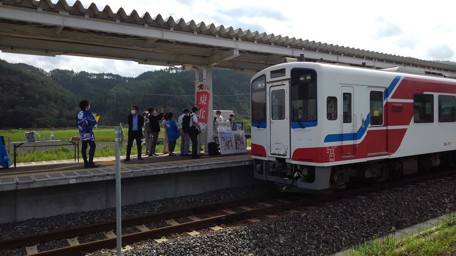 「岬のマヨイガ号」が到着した大槌駅ホーム