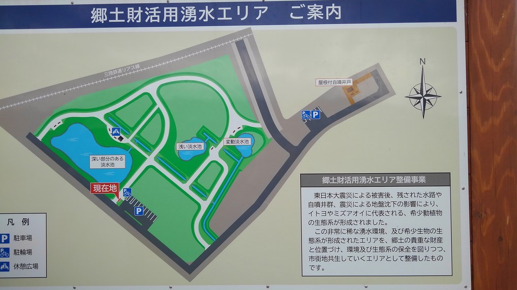 東日本大震災における犠牲者の「追悼・鎮魂」の場として整備される「鎮魂の森」予定地は、震災に伴う地盤沈下や津波浸食などにより大きな被害を受けた地区で、かつて生活を支えた湧水やイトヨ(糸魚)に代表される貴重な自然環境が蘇り、珍しいタコノアシやミズアオイ(水葵)の群生が見られます。