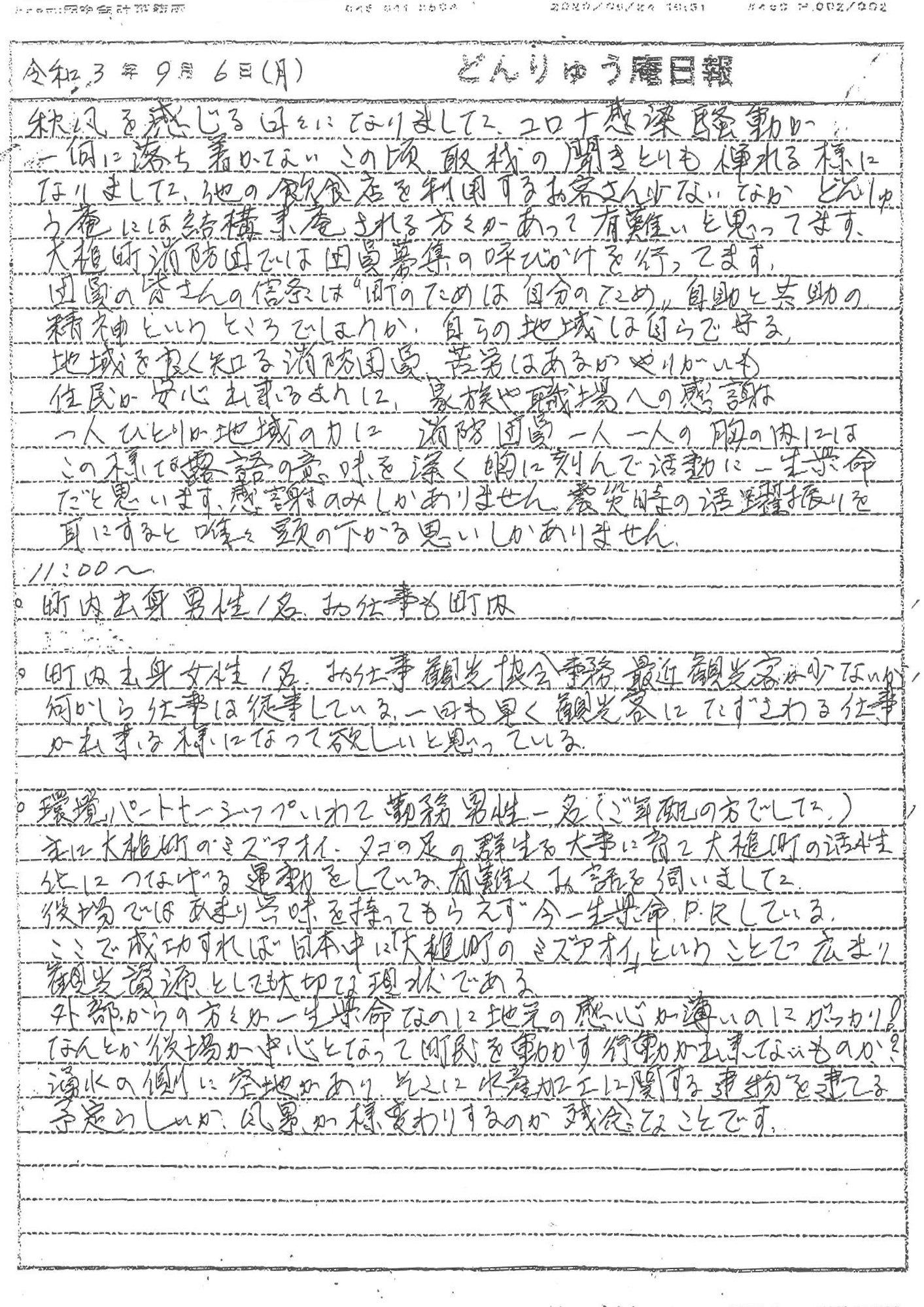 東日本大震災が発生した際に、大槌町消防団は住民を守るために自らの命を賭して水門扉門の閉鎖に急行したり避難誘導や救助活動を行いました。非常事態を住民に知らせるため サイレンを鳴らそうとするも停電で作動せず、とっさに倉庫から半鐘を持ち出し、屯所屋上でそれを鳴らし続け、津波に巻き込まれたり、また寝たきり老人の救助活動中に津波に住宅もろとも押し流されたりして16名が殉職しました。(消防庁HPより) その大槌町消防団の団員募集や、コミュニティハウス「どんりゅう庵」のお客様などについて、震災機構お嬢こと佐藤悦子特別顧問(岩手県大槌町在住)の現地報告です。