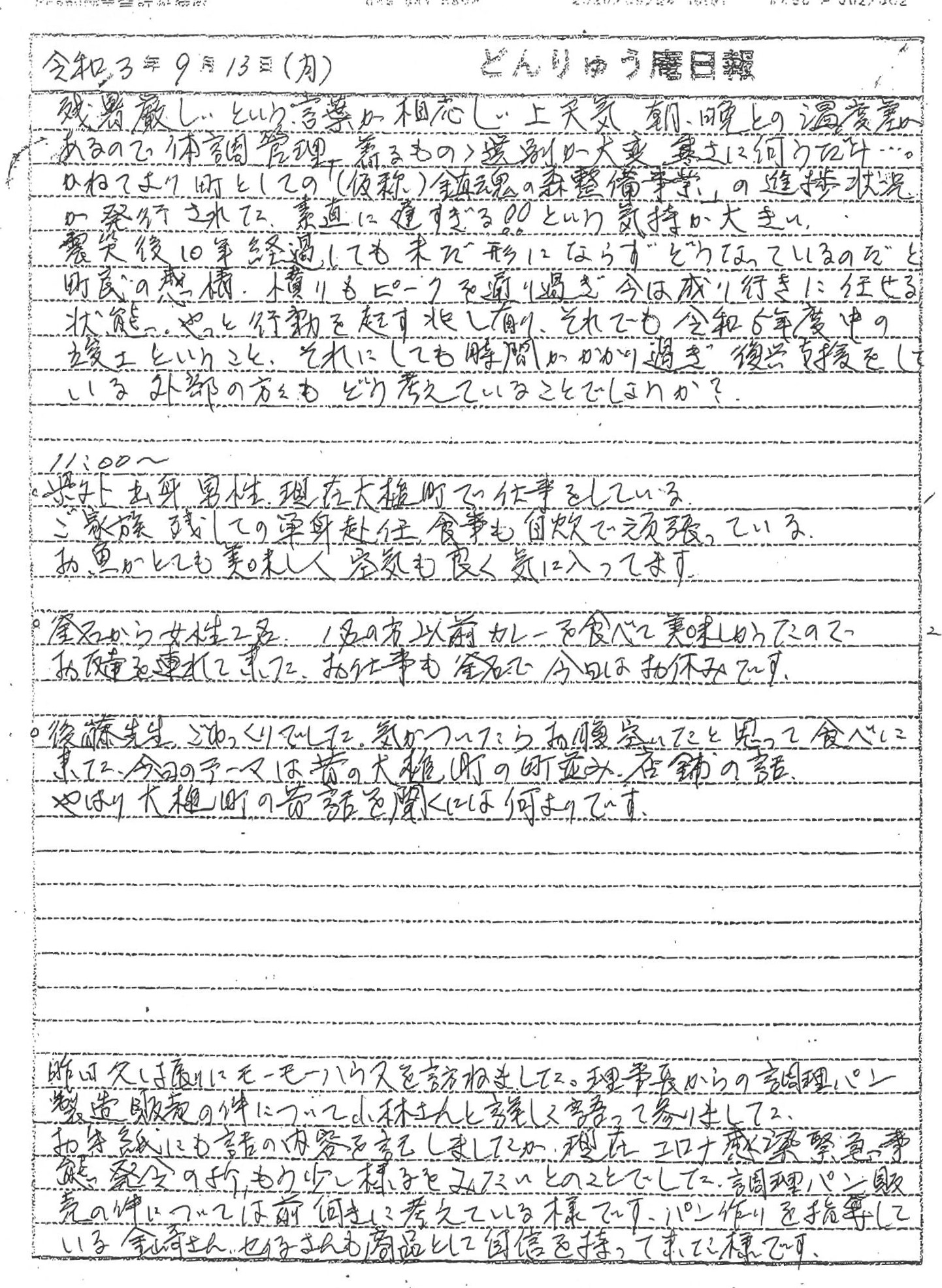東日本大震災における犠牲者の町全体の「追悼・鎮魂」の場として整備する「鎮魂の森」整備事業の進捗状況が発行され、令和5年度中の竣工を目指すと公表されました。町内や釜石から来られたコミュニティハウス「どんりゅう庵」のお客様などについて、震災機構のお嬢こと佐藤悦子特別顧問(岩手県大槌町在住)の現地報告です。