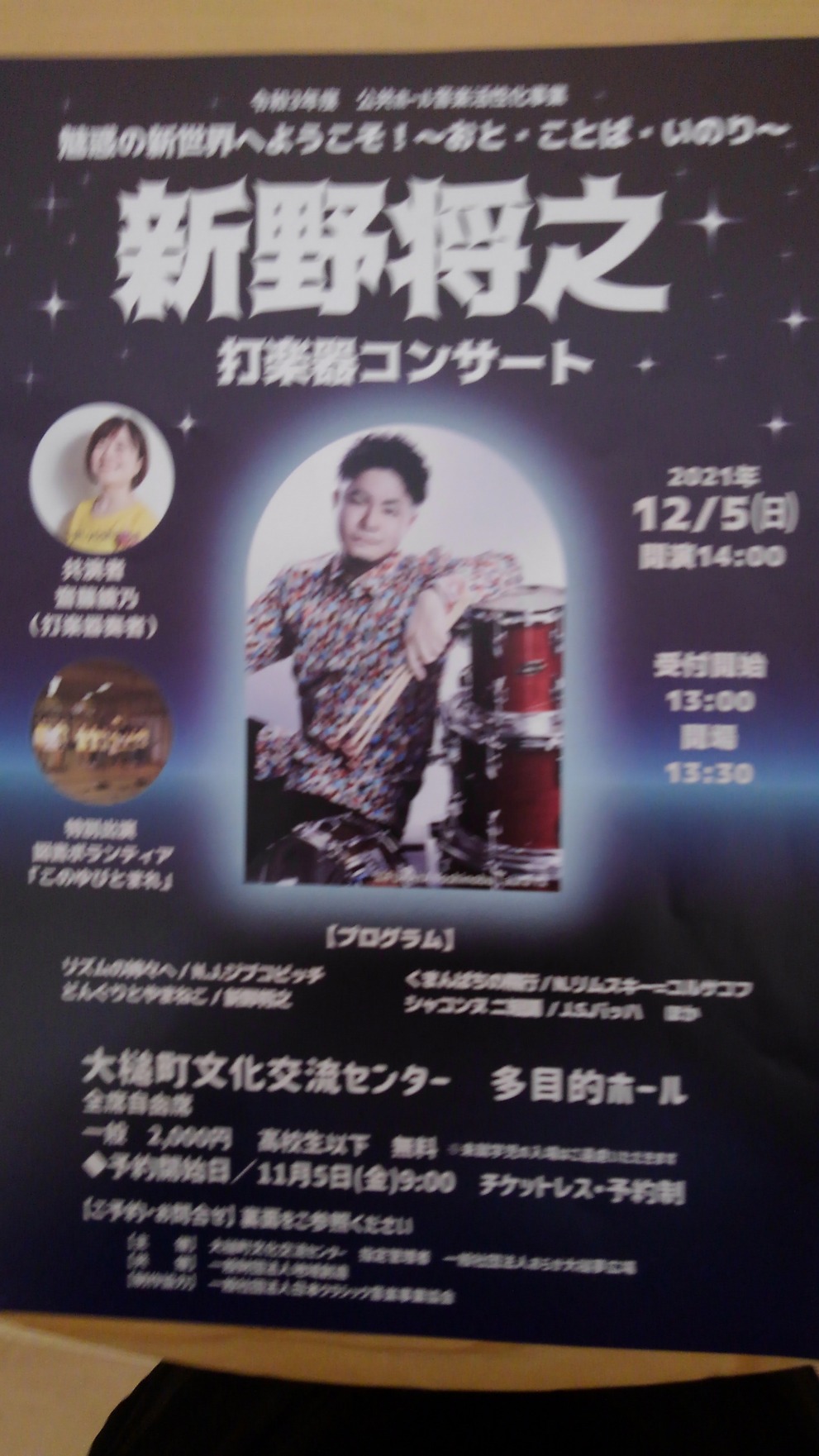 おしゃっち(大槌町文化交流センター)での打楽器コンサートポスター
