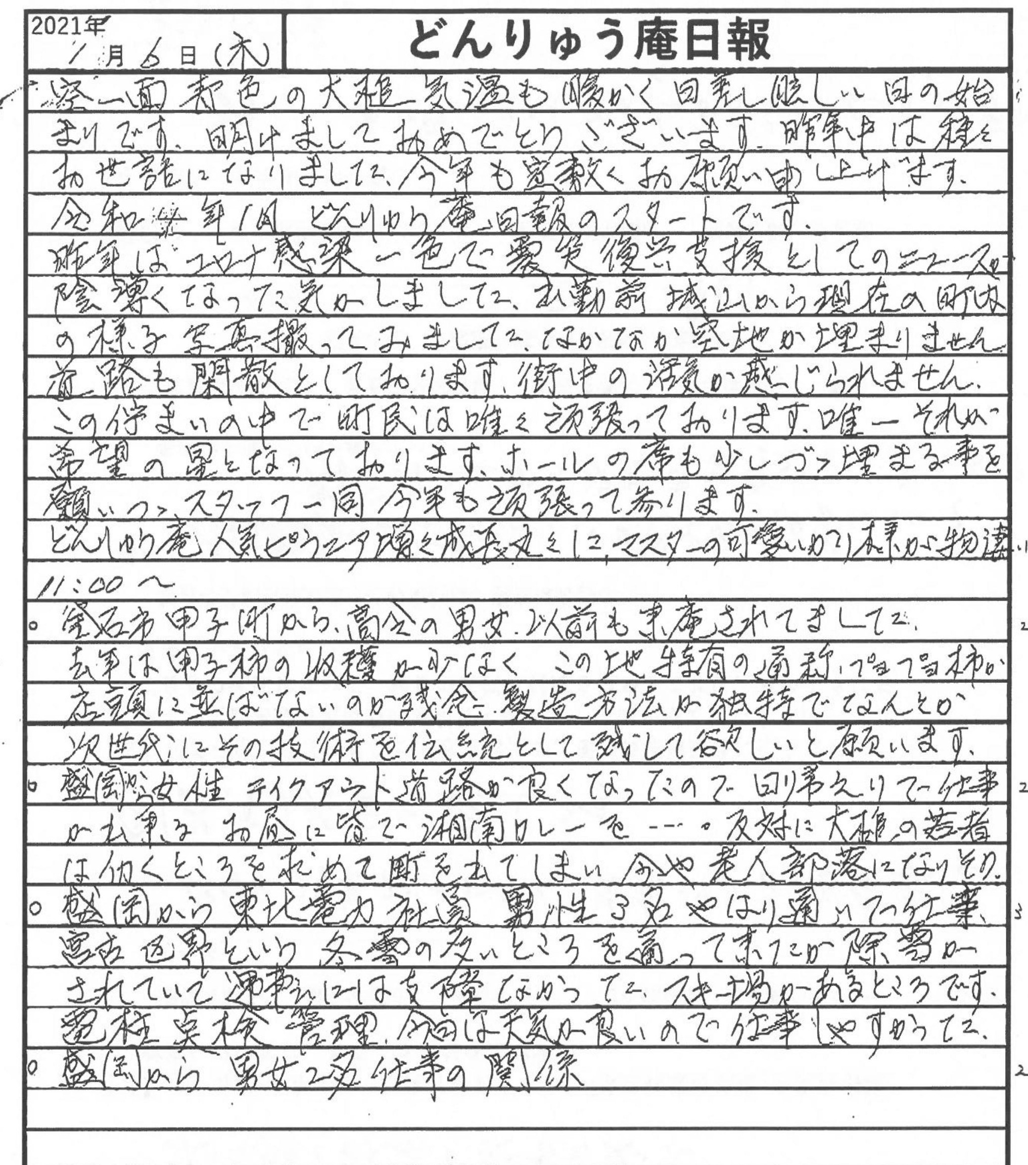 令和4年お嬢の大槌便りのスタートです。相次ぐコロナのニュ-スで震災復興関連のニュ-スの影が薄くなった気がしてなりません。新年にあたり城山からの大槌町の風景や町の様子と、コミュニティハウス「どんりゅう庵」のお客様などについて、震災機構のお嬢こと佐藤悦子特別顧問(岩手県大槌町在住)の現地報告です。