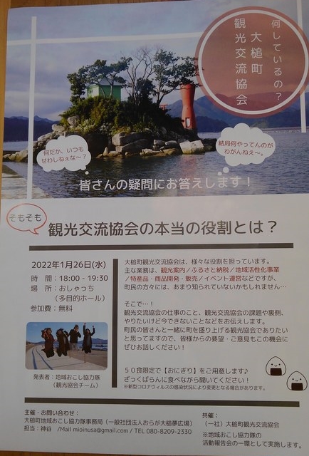 おしゃっち(大槌町文化交流センター)で開催された大槌町観光交流協会の説明会の模様や、コミュニティハウス「どんりゅう庵」のお客様などについて、震災機構のお嬢こと佐藤悦子特別顧問(岩手県大槌町在住)の現地報告です。