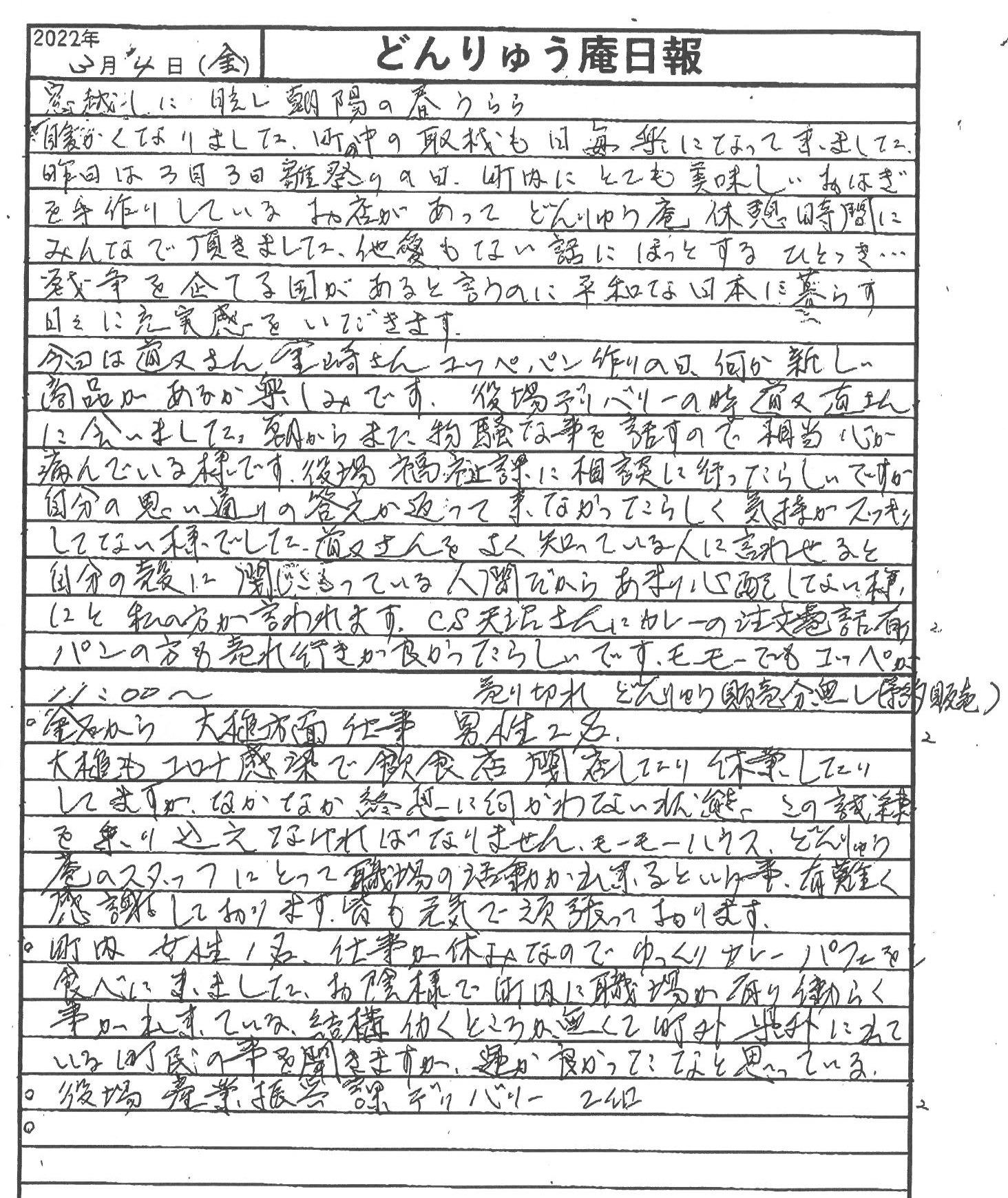 2022年3月7日 すっかり春景色の大槌の様子や、コミュニティハウス「どんりゅう庵」のお客様などについて、震災機構のお嬢こと佐藤悦子特別顧問(岩手県大槌町在住)の現地報告です。 FacebookXCopy