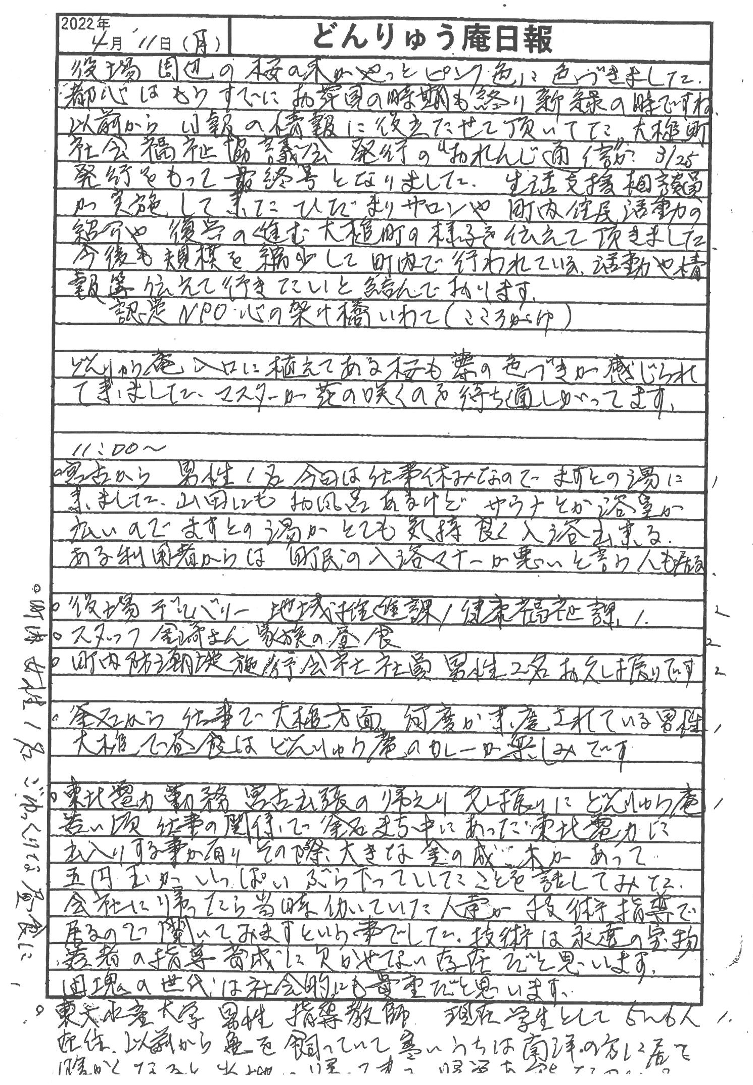 大槌町社会福祉協議会発行の「おれんじ通信-生活指導員だより」が3月をもって最終号となりました。この話題やコミュニティハウス「どんりゅう庵」のお客様などについて、震災機構のお嬢こと佐藤悦子理事長代理(岩手県大槌町在住)の現地報告です)