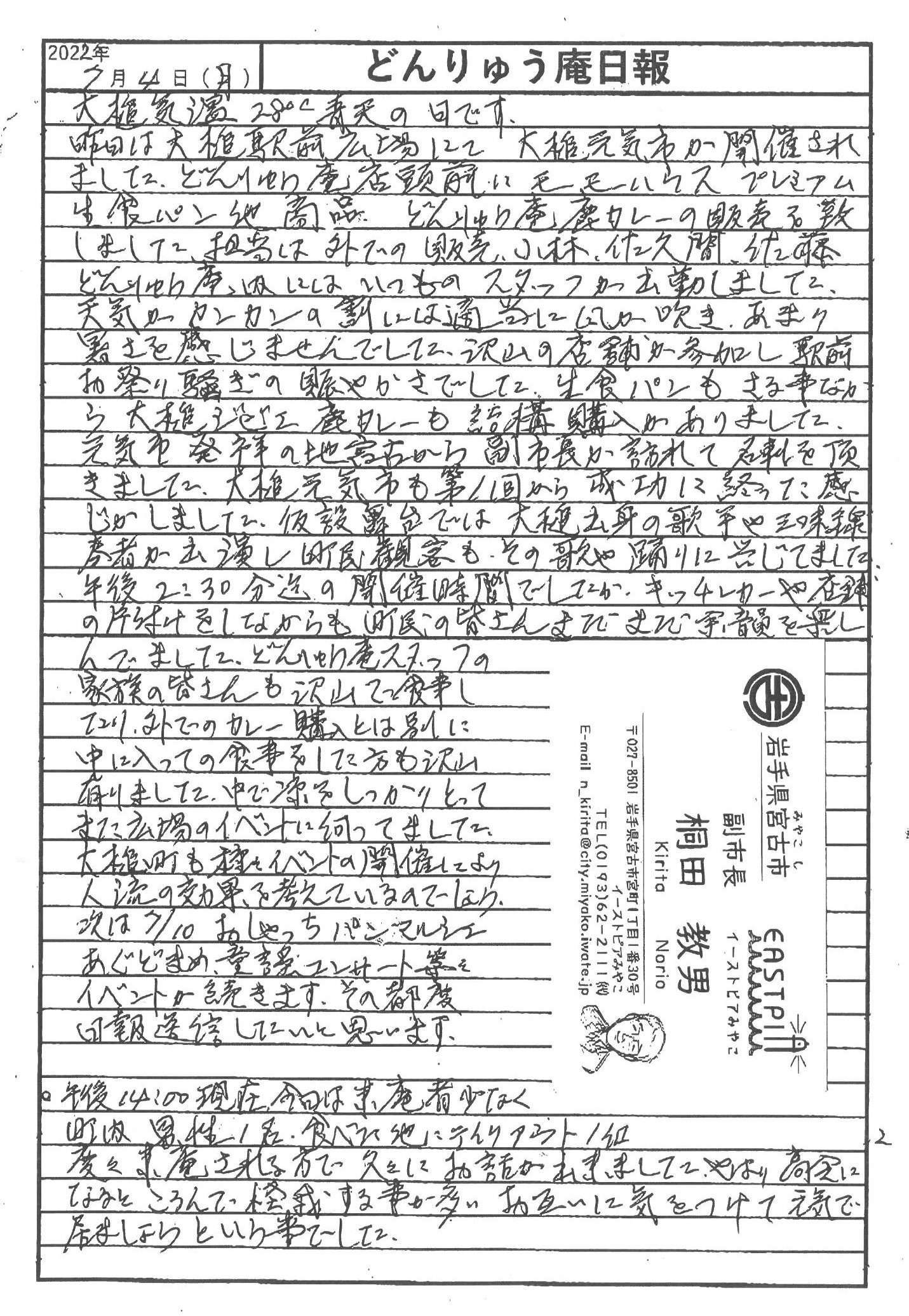 第1回大槌元気市が、宮古市鍬ケ崎(くわがさき)元気市の協力を得て盛大に開催されました。幣機構直営のどんりゅう庵、モーモ-ハウスも積極的に参加して、オリジナル鹿カレ-や生食パンなどを販売しました。その模様とコミュニティハウスどんりゅう庵のお客様などについて、震災機構のお嬢こと佐藤悦子理事長代理(岩手県大槌町在住)の現地報告です。