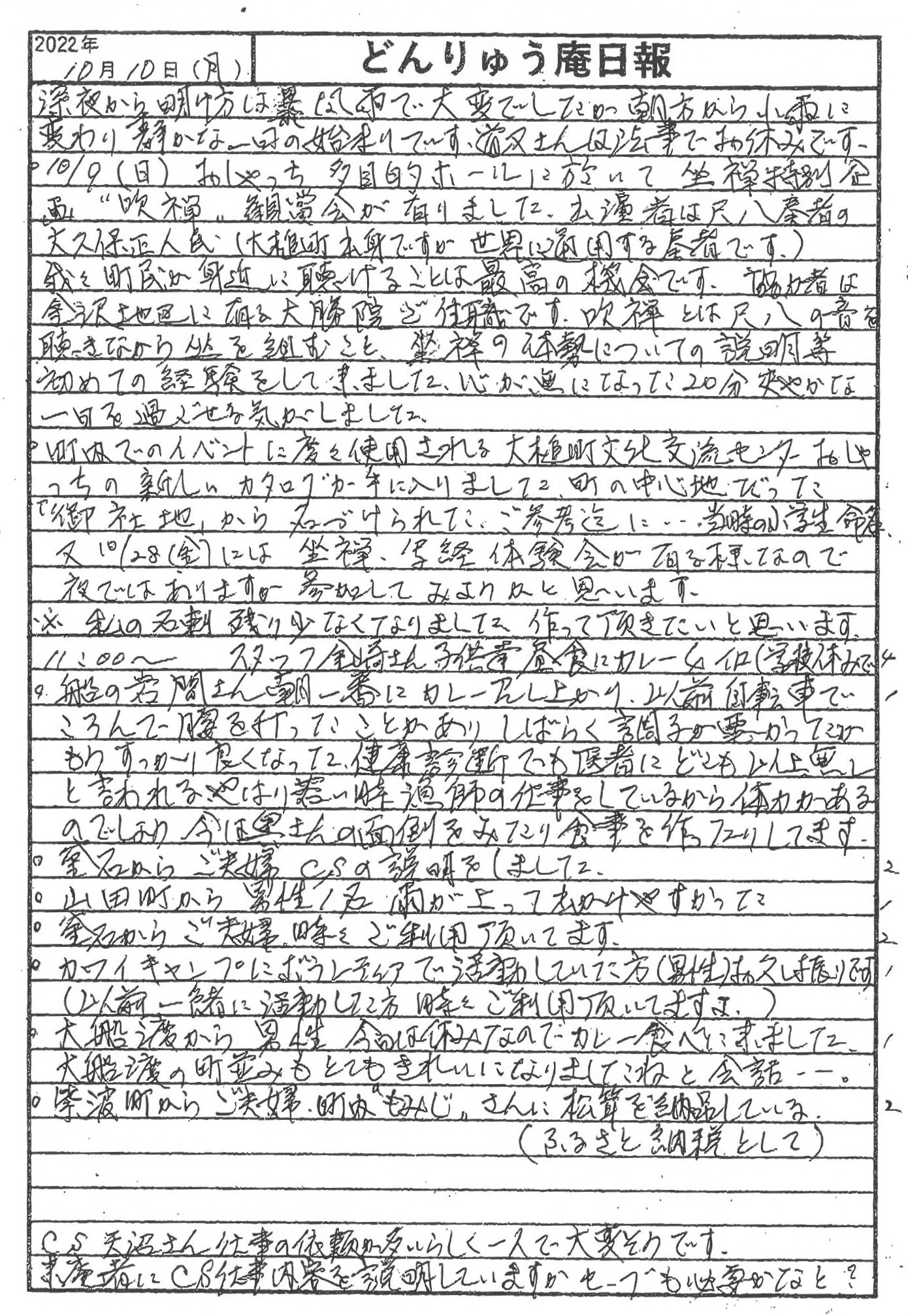 おしゃっち(大槌町文化交流センター)において、座禅特別企画「吹禅(すいぜん)」(尺八を聴きながらの座禅)鑑賞会が開催されました。その様子やコミュニティハウス「どんりゅう庵」のお客様などについて、震災機構のお嬢こと佐藤悦子理事長代理(岩手県大槌町在住)の現地報告です。
