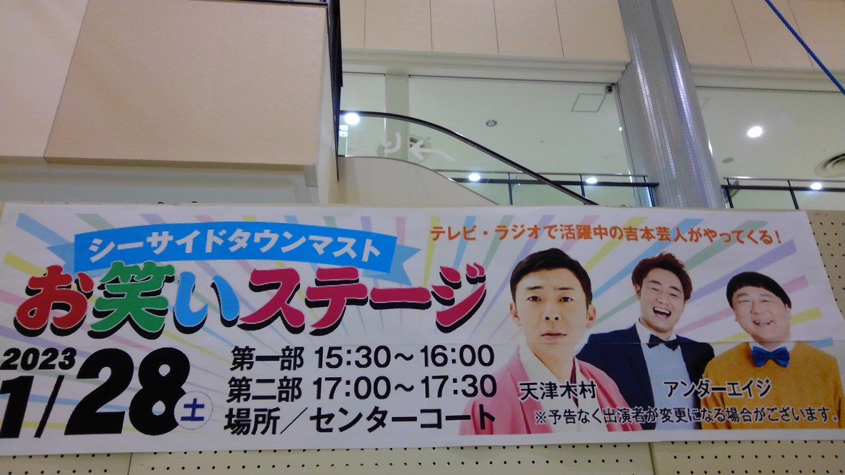 ショッピングセンター シーサイドタウンマストにおいて、TV・ラジオで活躍中の吉本興業の芸人によるお笑いステージが開催されました。その模様やコミュニティハウス「どんりゅう庵」のお客様などについて、震災機構のお嬢こと佐藤悦子理事長代理(岩手県大槌町在住)の現地報告です。