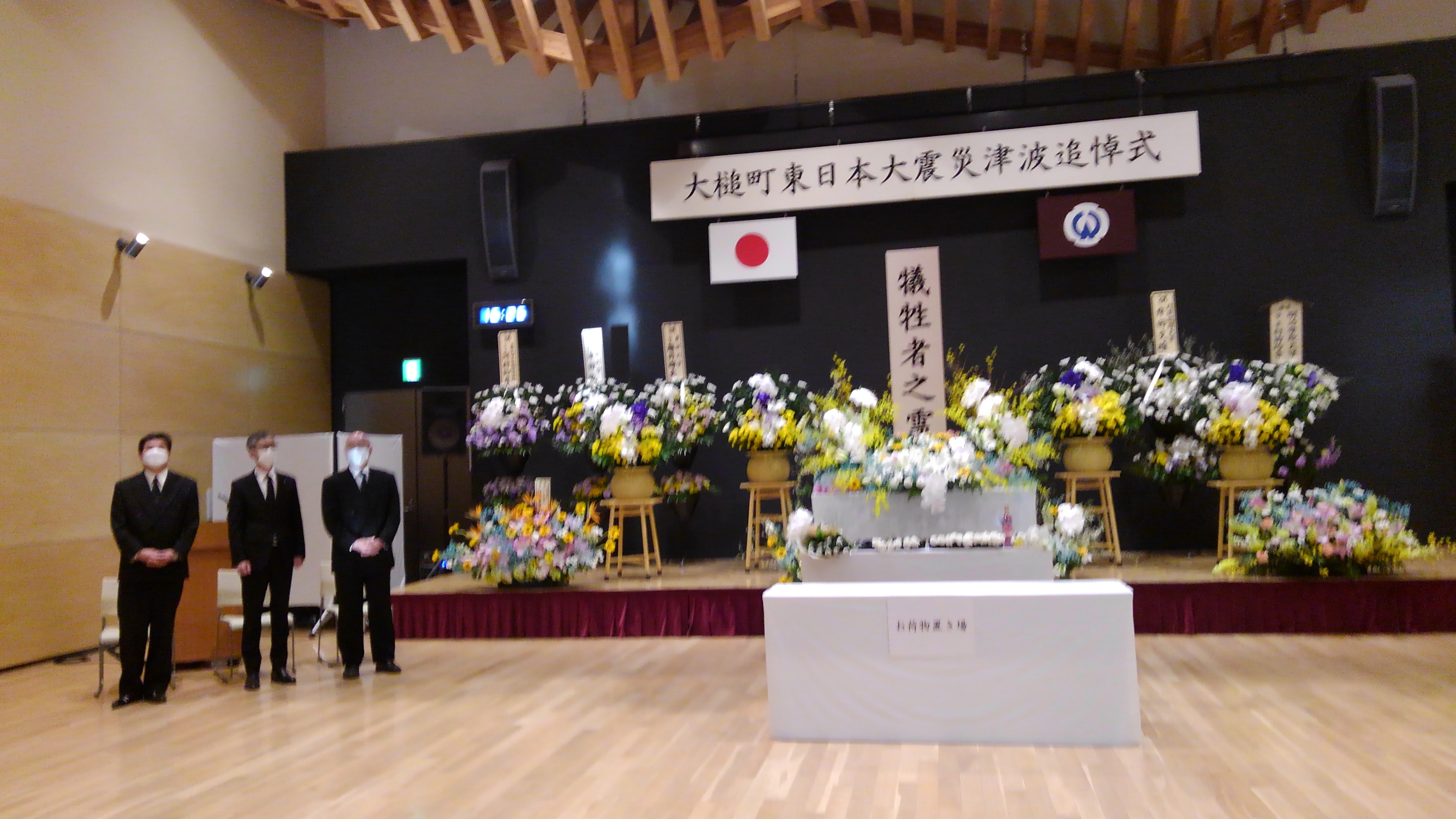 令和5年3月11日 岩手県大槌町おしゃっち(大槌町文化交流センター)において東日本大震災津波追悼式が行われました。震災から12年目となる今年の追悼式や、津波被害の写真展の模様などについて、震災機構のお嬢こと佐藤悦子相談役(岩手県大槌町在住)の現地報告です。