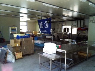 震災後、本格的操業が再開できていないが、「魚が捕れなくても加工だけは」と、仮設加工工場を建築。水産加工会社が復活しました。