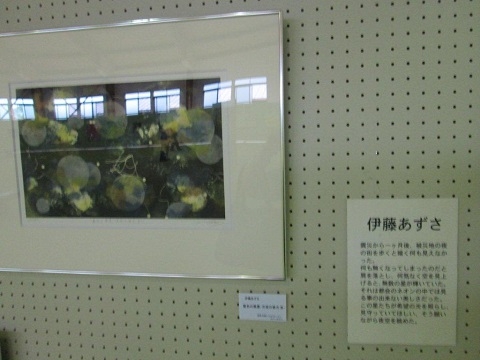 2013年7月10日 大槌町寺野弓道場で行われた展示会の様子です。 取材をしたどんりゅう庵の佐藤スタッフは、「絵の横に添えられたコメントが震災当時の被災者の心情をとてもよく表しているものでした」と言っていました。 FacebookXCopy