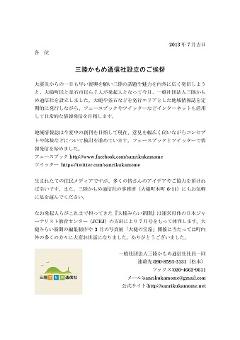※一般社団法人三陸かもめ通信社