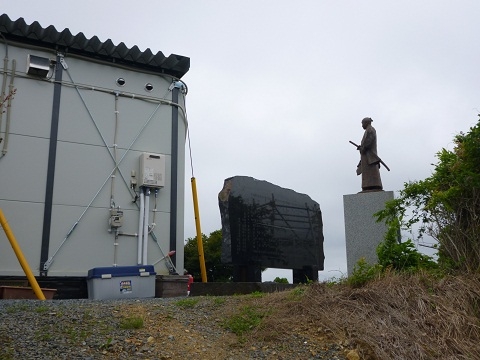 月浦の高台に立つ支倉常長像です。像の立つ平地には仮設住宅が建っていました。被災地では少ない平地を有効活用しています。