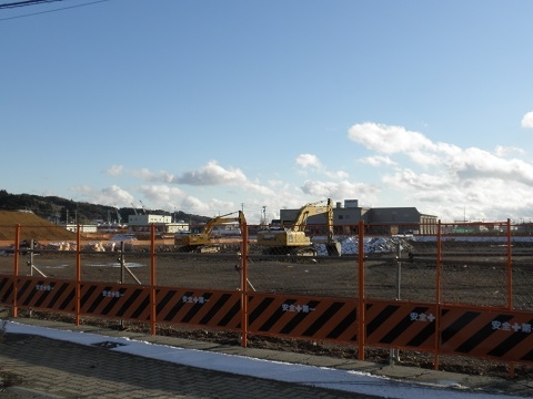 2014年1月15日 東日本大震災による津波で宮城県気仙沼市の市街地に打ち上げられていた巨大船「第十八共徳丸」が2013年10月から解体されていて、現在、その跡地は土地整備が進んでいます。 2013年12月15日撮影 FacebookXCopy