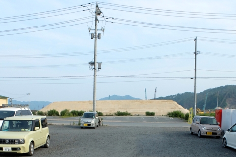 大槌の「原風景」ならぬ「現風景」をお伝えします。今日は、どんりゅう庵やモーモーハウスの正面に見えている盛り土の風景です。