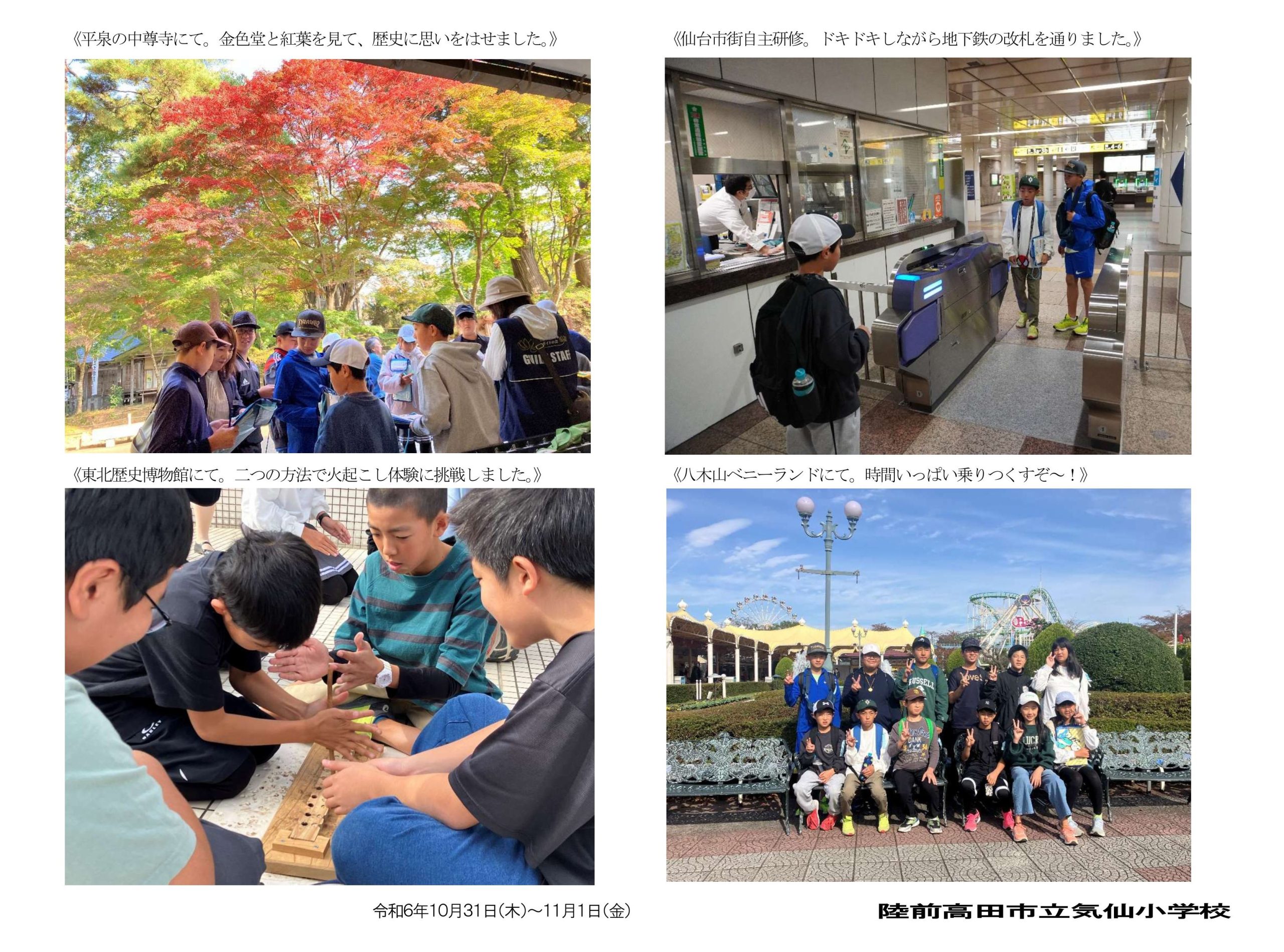 このたび、岩手県陸前高田市教育委員会様から陸前高田市気仙小学校が令和6年10月31日~11月1日に実施した仙台方面への修学旅行写真が届きました。