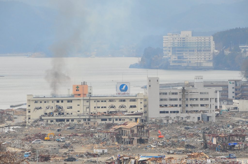出所:東日本大震災文庫(宮城県)提供者:南三陸町 場所は南三陸町志津川汐見町