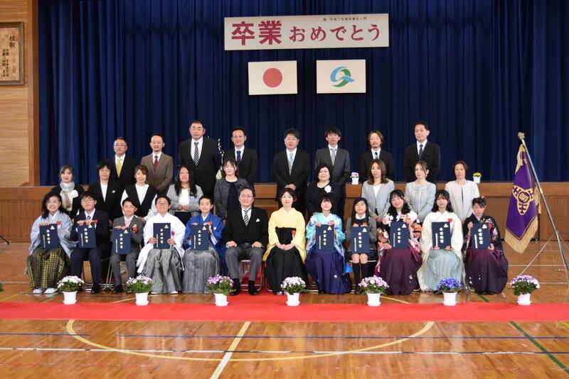 気仙沼市立大島小学校校舎と令和6年度卒業式(学校HPより引用)