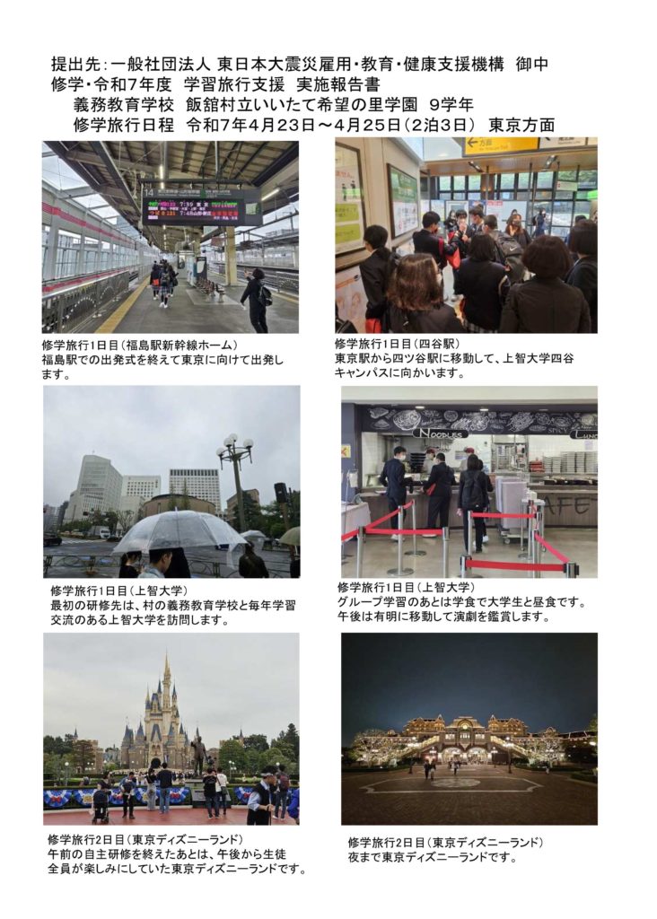 このたび、福島県相馬郡の飯舘村教育委員会様から飯舘村立いいだて希望の里学園が令和7年4月22日~24日に実施した東京方面への修学旅行写真が届きました。