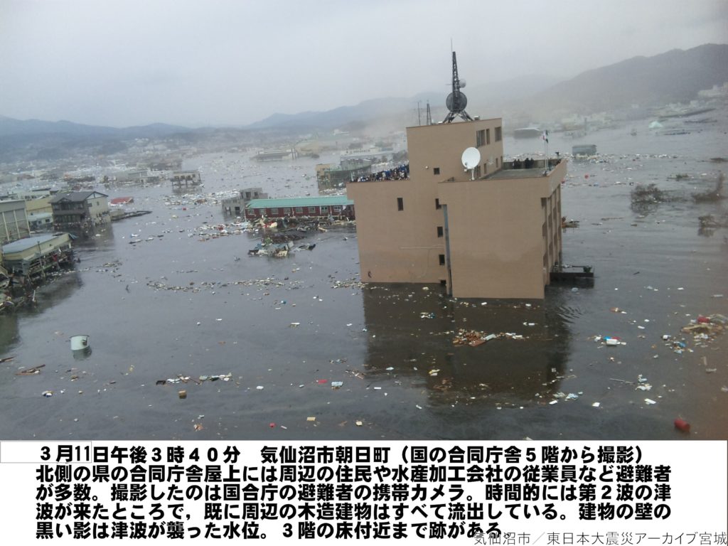 東日本大震災を風化させず未来への教訓として生かすために「東日本大震災アーカイブ宮城 けせんぬまアーカイブ」から引用して掲載しています。(気仙沼市朝日町)