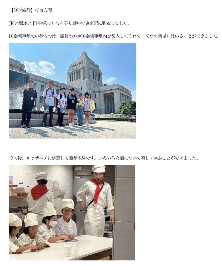このたび、福島県双葉郡の浪江町教育委員会様より、令和7年7月に実施された浪江町立なみえ創成小学校6年生の東京方面への修学旅行の写真をご提供いただきました。