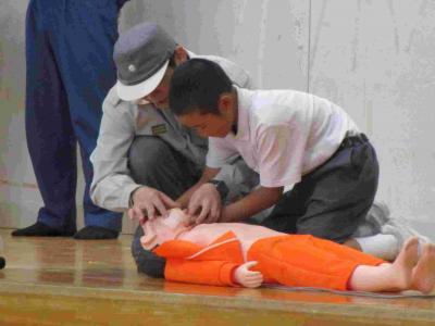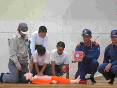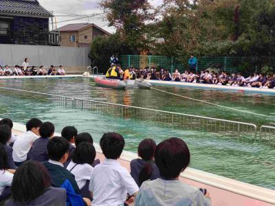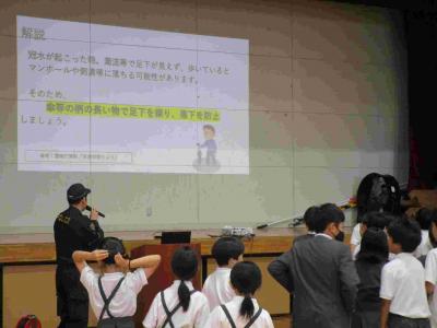 市内小中学校防災訓練 子どもたちも参加し、その後学校で振り返りなどを行いました。プールでの消防と警察の訓練を見学したり、防災教室も4~6年生に実施したりしました。