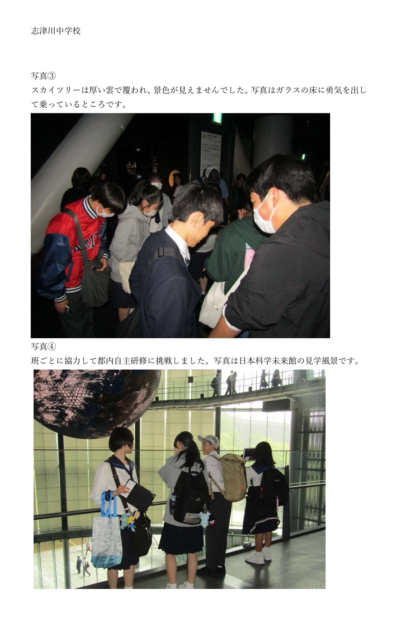 このたび、宮城県本吉郡の南三陸町教育委員会様より、令和7年4月23日~25日に実施された南三陸町立志津川中学校の東京方面への修学旅行の写真をご提供いただきました。