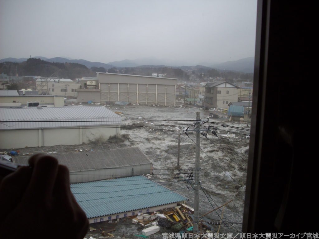 掲載写真:津波襲来時の宮城県気仙沼市朝日町地内