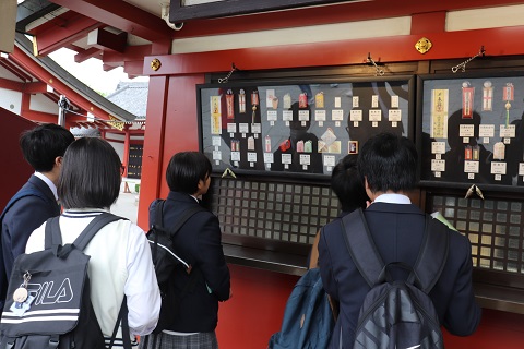 写真④ 自主研修の浅草寺です。どんな願いをかなえてくれるお守りにしようかな。