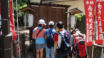 自主研修で会津若松市内を歩いていると「おさすり地蔵」を発見。みんなでお参りしました。