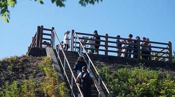 江戸時代にこの場所から太陽や月,星の動きを観測し,天文学を学んだと聞き,児童は感心している様子でした。