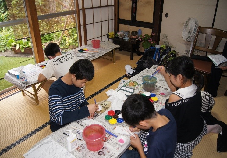 ④小澤蝋燭店にて。 自主研修での「蝋燭絵付け体験」 お店の方にインタビューしてたくさん教えていただきました。
