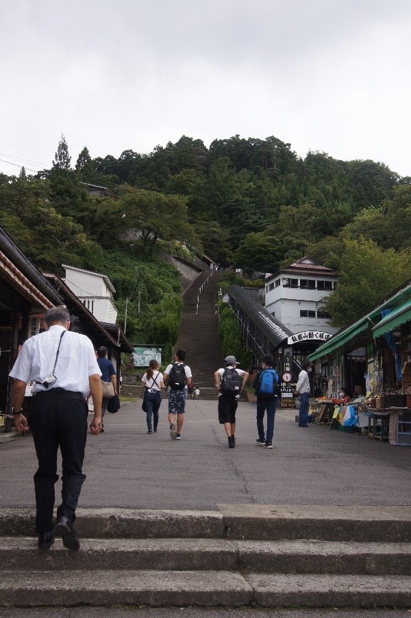 ②飯盛山見学 階段を上って隊士の墓に詣でる。戊辰戦争の背景を学びました。