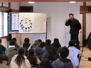 4 日新館,「ならぬことはならぬものです」など白虎隊が学んだ什の掟に関する講話を聞き