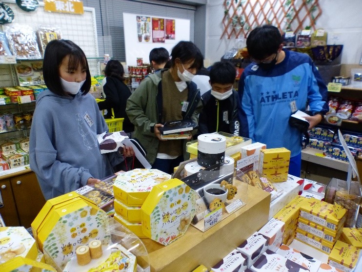 家族へのお土産をじっくり考えている様子です。計画的にお金を使うことができました。