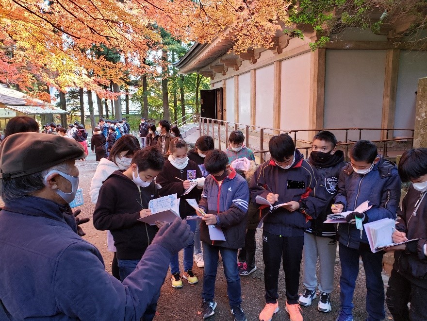 1日目の午前中は平泉へ。 修学旅行の団体が大勢いて迷子になりそうでした。熱心にガイドさんの説明を聞きメモをとる6年生