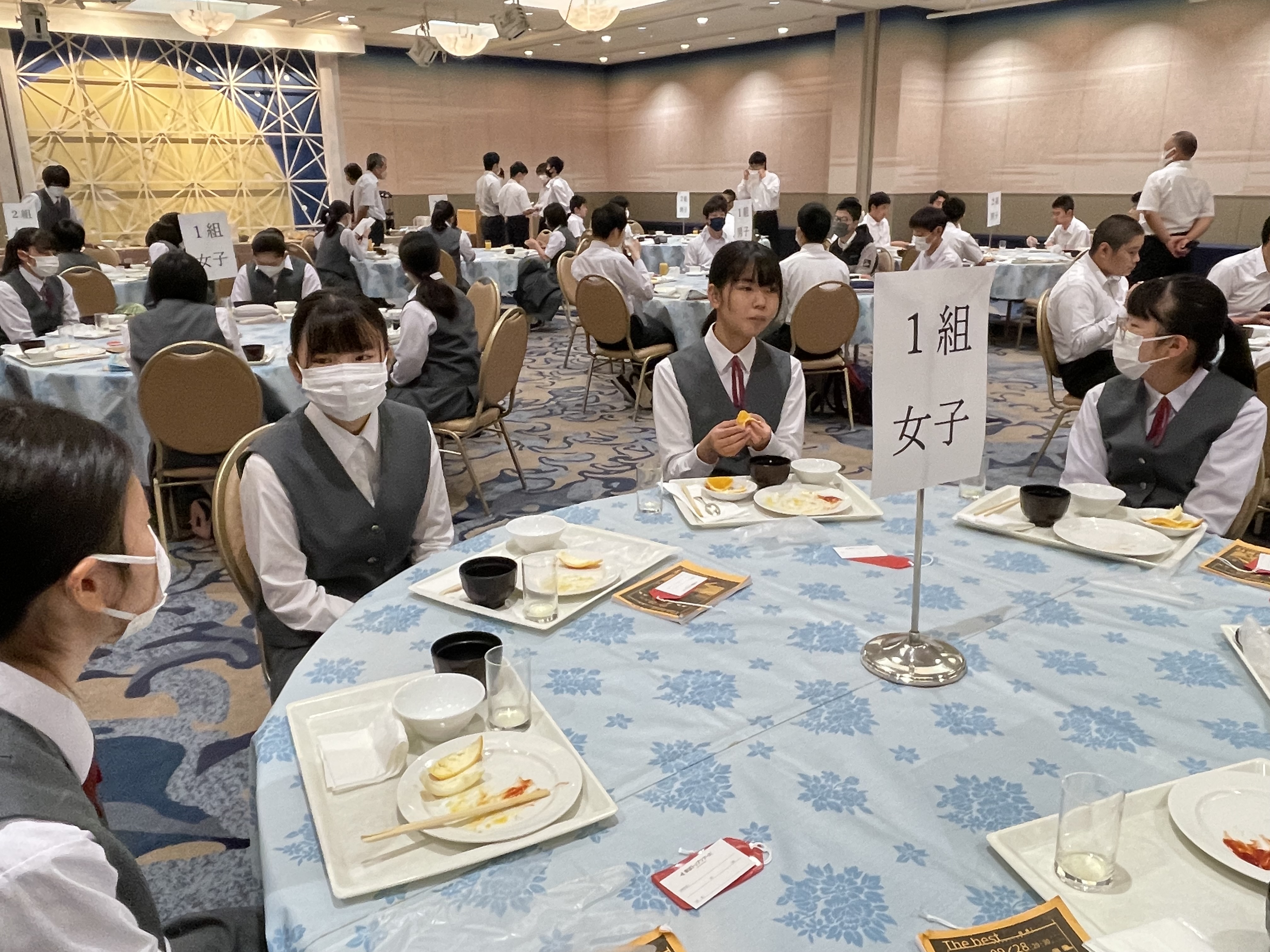 【ホテル】ホテルでの朝食。バイキング形式のおいしい朝食でした。みんな,一日のエネルギーをしっかり補給しました。