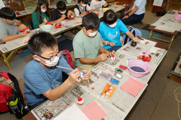③自主研修で起き上がり小法師や赤べこの絵付け体験を行いました。(9/21)