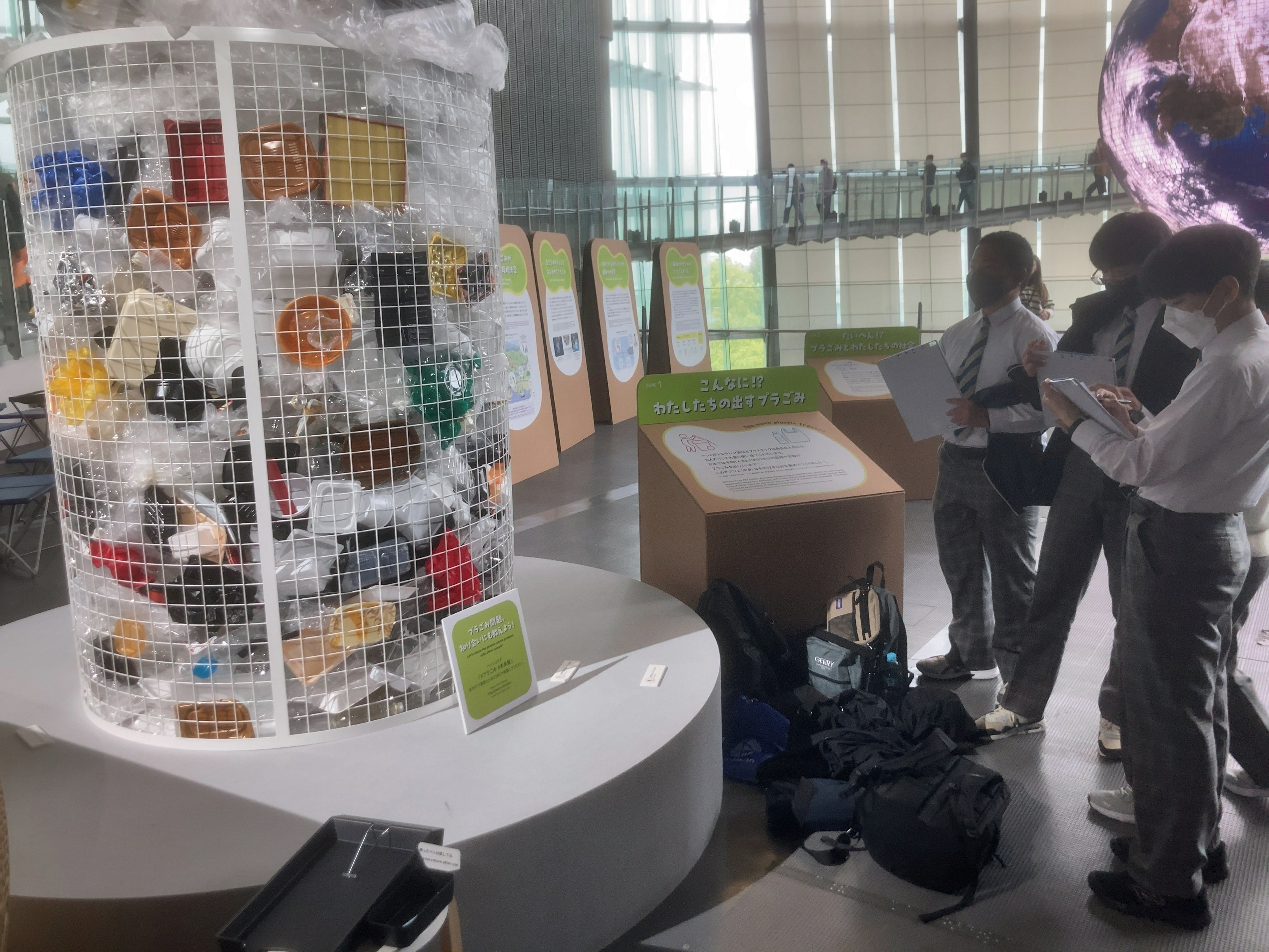 【日本科学未来館】 R5年4月26日(火),班別自主研修で,プラスチックごみの展示から,ごみ問題について考えている様子です。