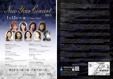 1/12(祝)に東京六本木のサントリーホール・ブルーローズで開催される国際芸術連盟主催の「ニュー・イヤー・コンサート2015」で、いつも当機構をご支援いただいていますピアニスト野谷恵さまが演奏されます。
