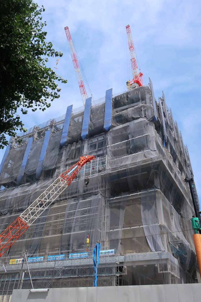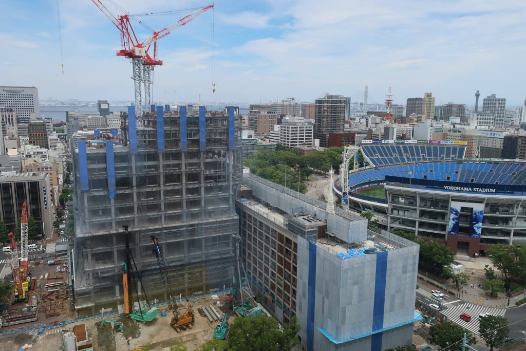 震災機構の事務所の真向かいに立つ旧横浜市庁舎跡地の再開発工事が着々と進んでいます。